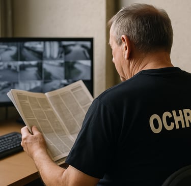 Ochrona obiektu – czy to magazyn, fabryka, biurowiec – zazwyczaj jest obecna. Widzisz kogoś przy wejściu, czasem z radiem, czasem przed monitorem.