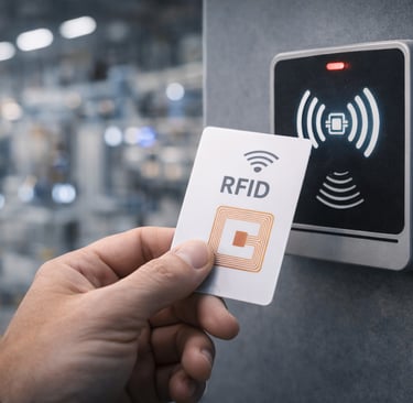 RFID (Radio-Frequency Identification) i NFC (Near Field Communication) to technologie, które umożliwiają bezprzewodową identyfikację obiektów lub osób za pomocą fal radiowych.